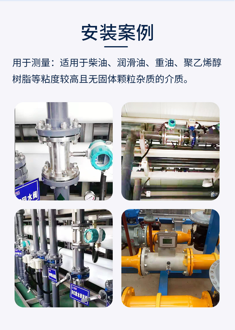 可測(cè)介質(zhì):燃油、柴油、汽油、導(dǎo)熱油、液壓油、煤油、焦油、石油、原油、瀝青、樹(shù)脂等液體,特別適用于高粘度液體的測(cè)量。