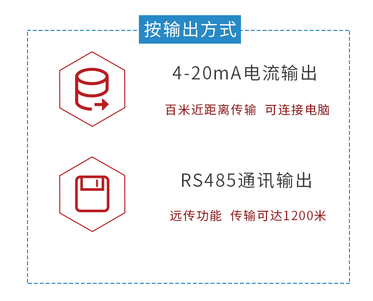 - RS485通訊輸出:具有遠傳功能,傳輸距離可達1200米,是一種有線傳輸。